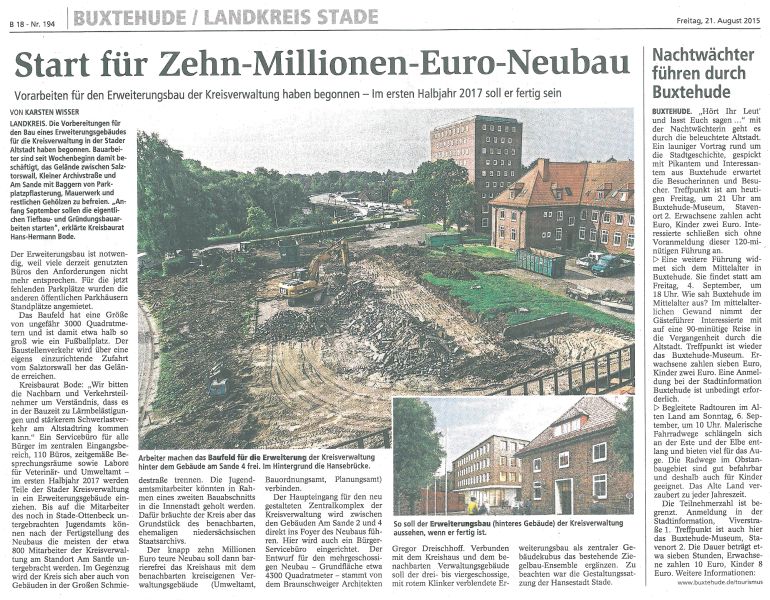 Zeitungsartikel aus dem Buxtehuder Tageblatt vom 21.08.2015