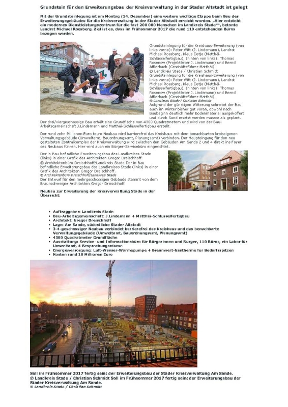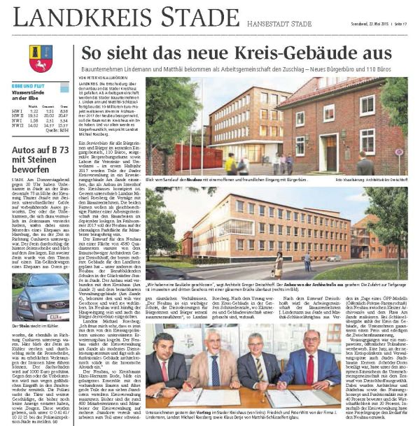 Die ARGE "Kreisverwaltung Stade" besteht aus der Firma Matthäi Schlüsselfertigbau und der Firma J. Lindemann.