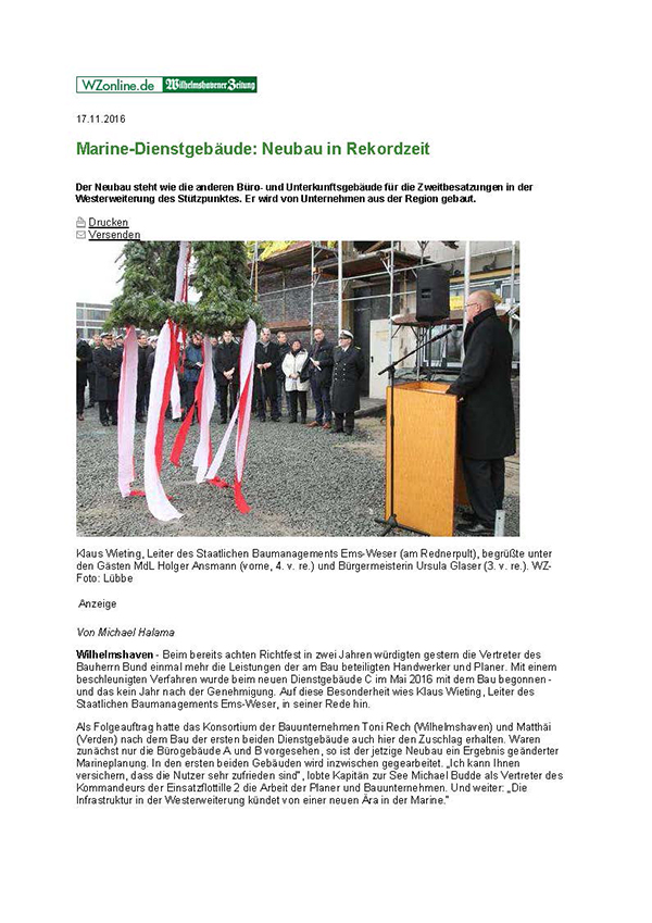 Zeitungsartikel aus der Wilhelmshavener Zeitung vom 17.11.2016.