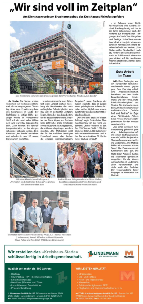 Zeitungsartikel aus der Verdener-Aller-Zeitung vom 22.08.2016.Die Bauarbeiten hat Matthäi Trimodalbau durchgeführt.