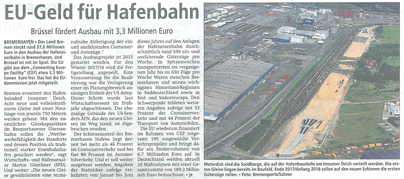 Zeitungsartikel aus der Wilhelmshavener Zeitung vom 19.09.2016.Die Bauarbeiten wurden von Matthäi Trimodalbau durchgeführt.