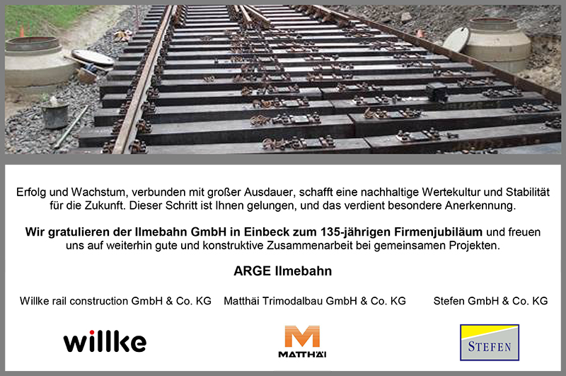 Wir gratulieren der Ilmebahn GmbH in Einbeck zum 135-jährigen Firmenjubiläum
