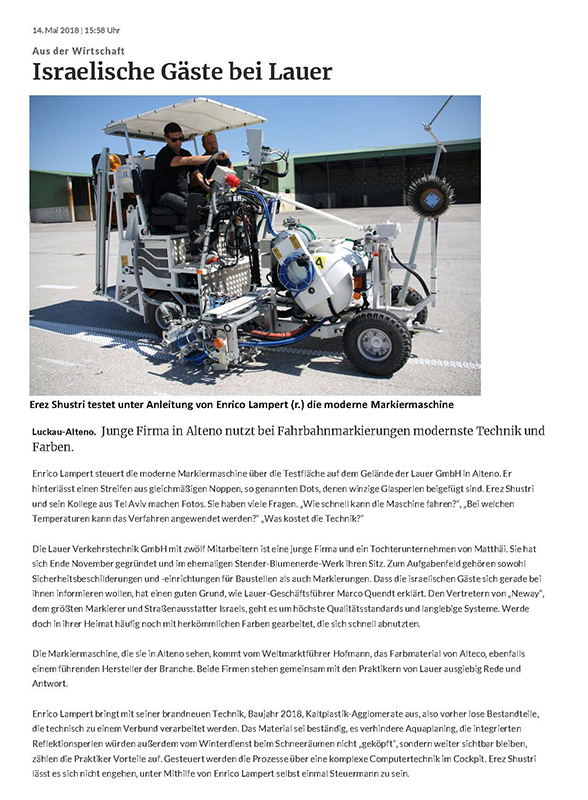 Ein Zeitungsartikel aus der Luckauer Rundschau vom 14.05.2018.
