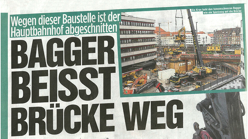 Bagger beisst Brücke weg