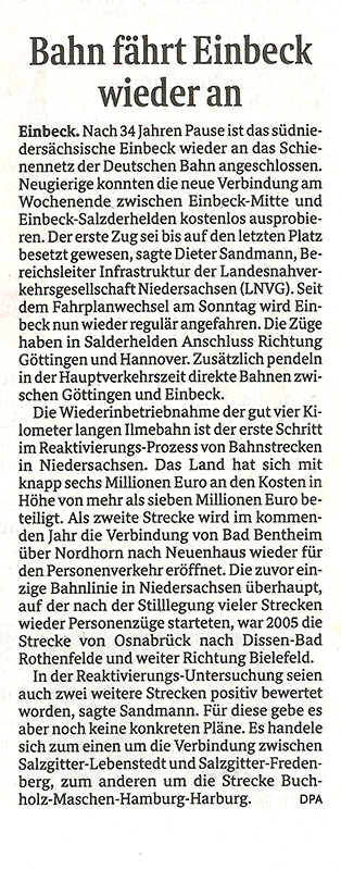 Bahn fährt Einbeck wieder an