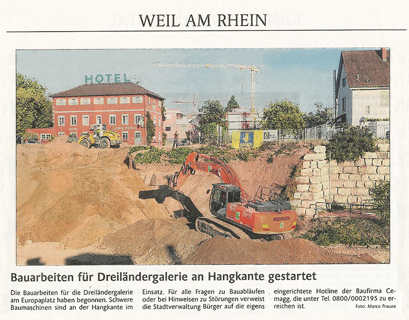 Bauarbeiten für Dreiländergalerie an Hangkante gestartet