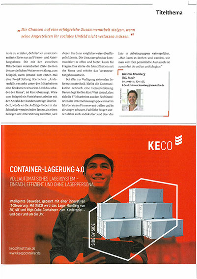 KECO im Magazin "Wirtschaft Elbe - Weser" der Industrie- und Handelskammer Stade