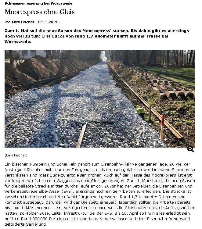 Ein Zeitungsartikel aus der Wümme-Zeitung vom 29.03.2019.